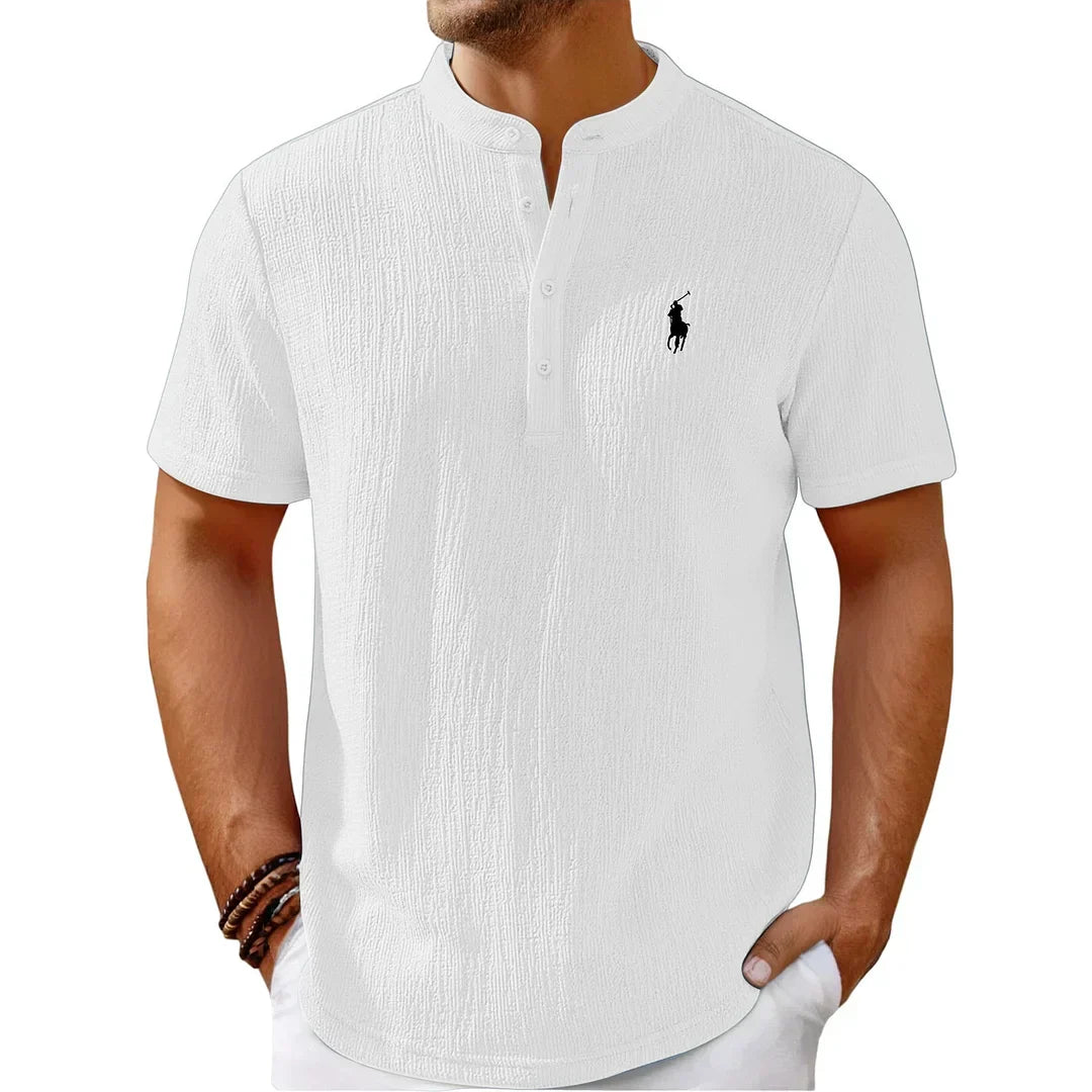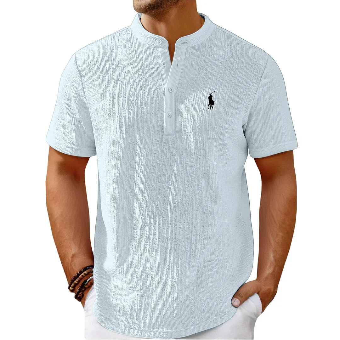 Confectionnée dans un tissu léger en coton mélangé et texturé qui laisse respirer la peau, cette chemise est un choix évident pour les journées plus chaudes. La texture du tissu apporte non seulement un joli rendu visuel, mais aide aussi à réduire la visibilité des plis pour une apparence fraîche tout au long de la journée. Douce sur la peau, elle est aussi suffisamment robuste pour garder sa forme lavage après lavage.